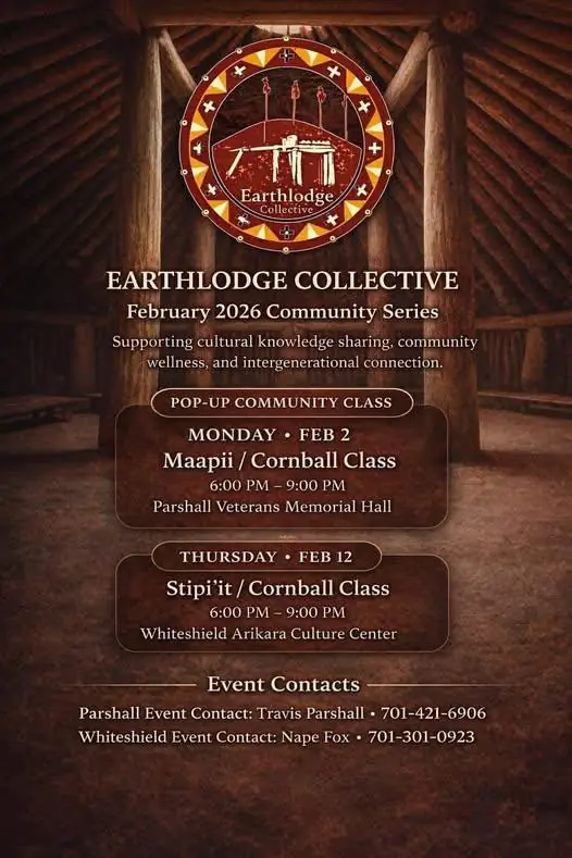 February 12th, Arikara Cultural Center • This event will be live streamed on Earthlodge Collectives page.